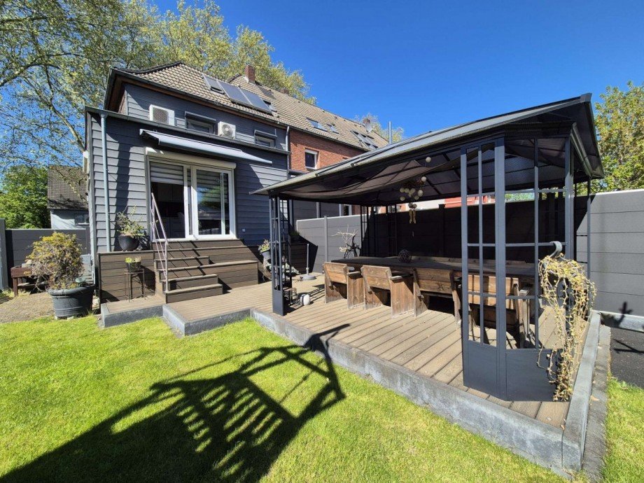 Ein besonderes Highlight ist der großzügige und liebevoll angelegte Garten, der viel Raum für Erholung, Spiel und gesellige Stunden im Freien bietet. Zwei Terrassen laden dazu ein, zu jeder Tageszeit den passenden Platz an der Sonne oder im Schatten zu finden und den Außenbereich in vollen Zügen zu genießen. Die Südlage garantiert zudem gerade im Sommer jede Menge Erholung. Die Kombination aus großzügigem Grundstück und der Lage als Reihenendhaus sorgt zudem für ein angenehmes Maß an Privatsphäre.